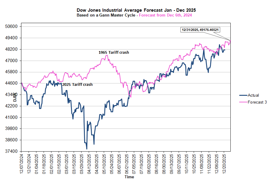 As you can see, I made a forecast for the DJIA at around 49,000 and the S&P 500 at around 6,660 by the end of 2025.