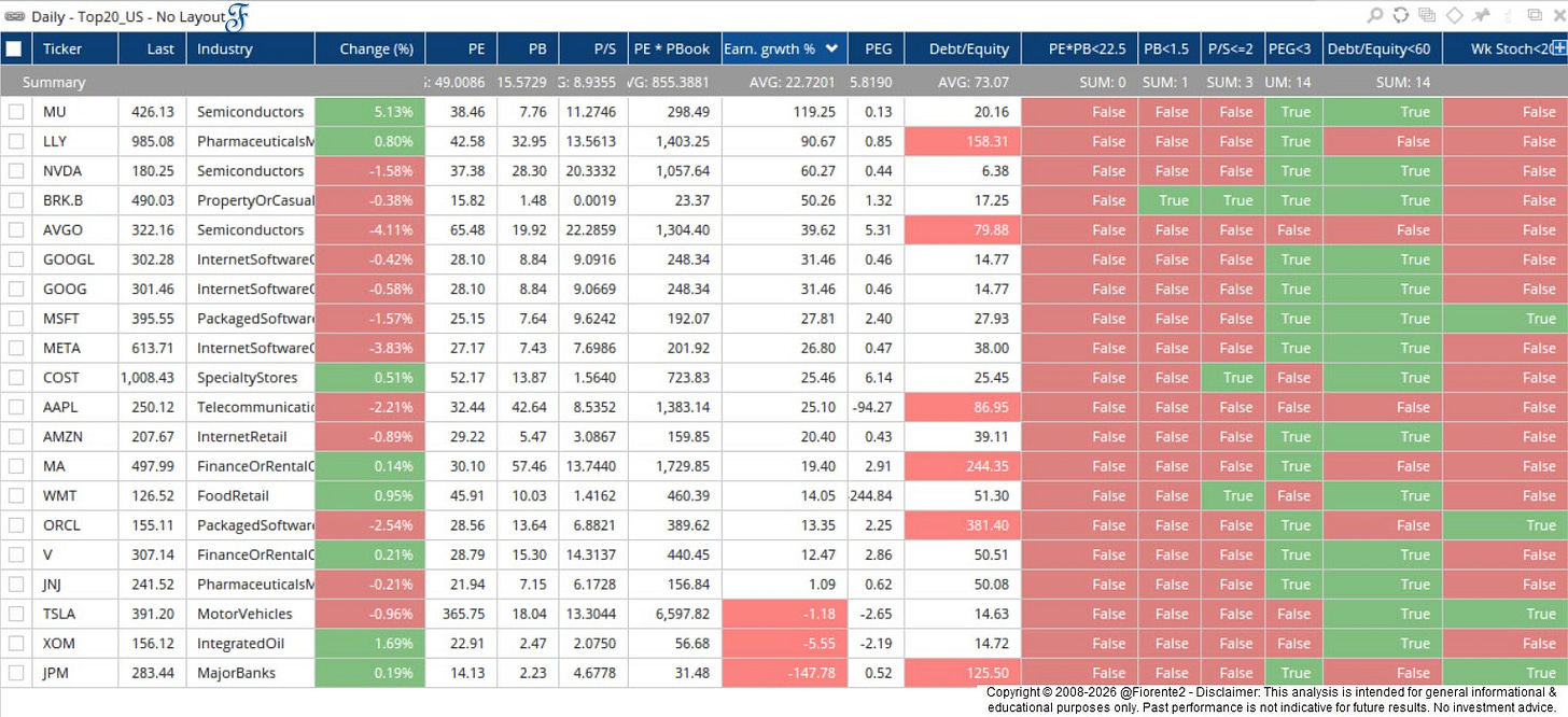From a Top-20 US Stock perspective, most of the stocks that drive the US Indices appear fundamentally or technically overbought, which supports my hypothesis that there is reason to believe the US Indices could seek lower lows.