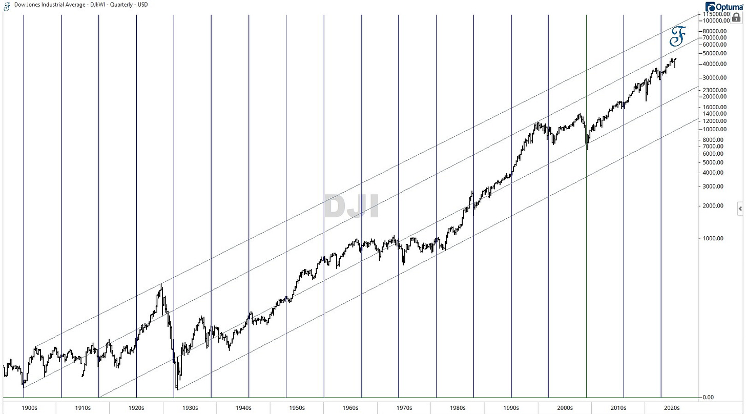 Note: (1) the 7-year cycle may not always cause a devastating decline as we recently have seen in 1987, 2001-2002, 2008-2009 or 2021-2022. (2) The trendlines suggest we haven’t reached old all-time highs yet, and there is still room for more upside to come.