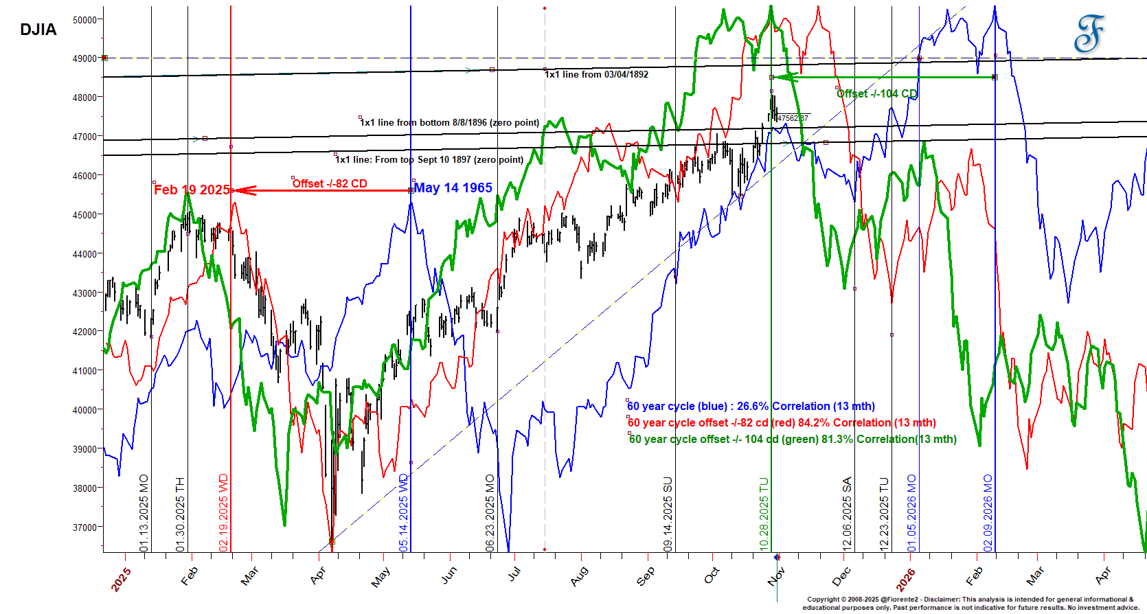 I’m curious whether his commentary could also apply to the stock market, running into a February 2026 high. It is possible as the 60-year nominal cycle had its high in February 1966. Twice the 60-year cycle (the 120-year Vedic cycle) peaked in mid-January 1906, so it is possible we may see the stock market continue to a 2026 high from a long-term perspective.