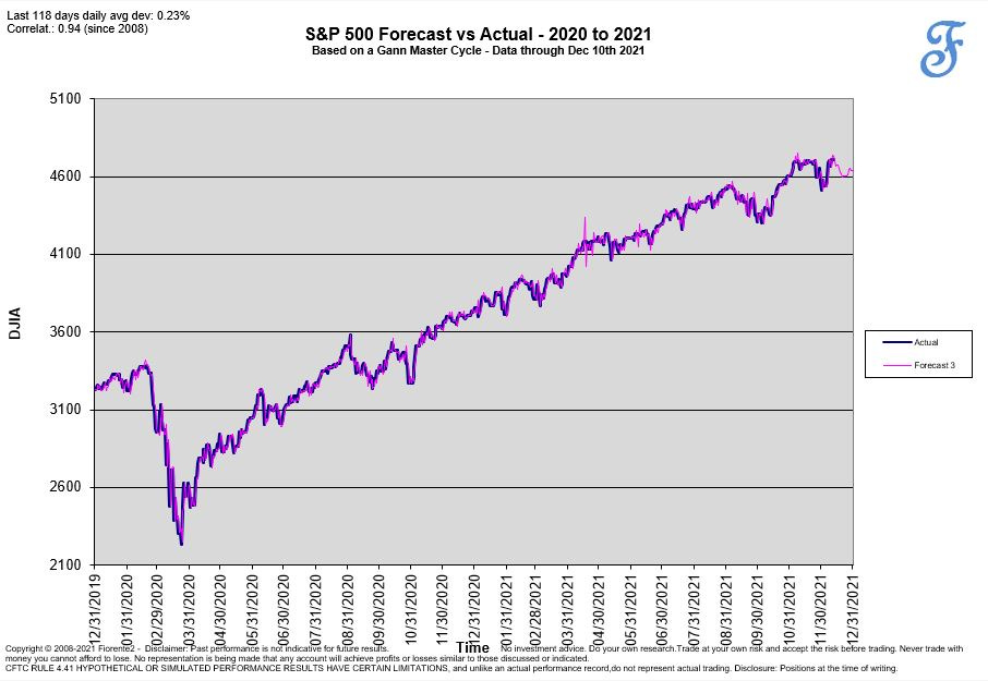 Last Friday the $SPX made an incredible run as well as time was not up yet. We knew from the dominant Gann Master Cycle this could happen. The Stock Market is still following the Gann Master Cycle until last Friday, December 10th 2021 as you can see in below chart. Note: I will publish the dominant Gann Master Cycle projection on the $SPX in my annual Stock Market Outlook 2022.