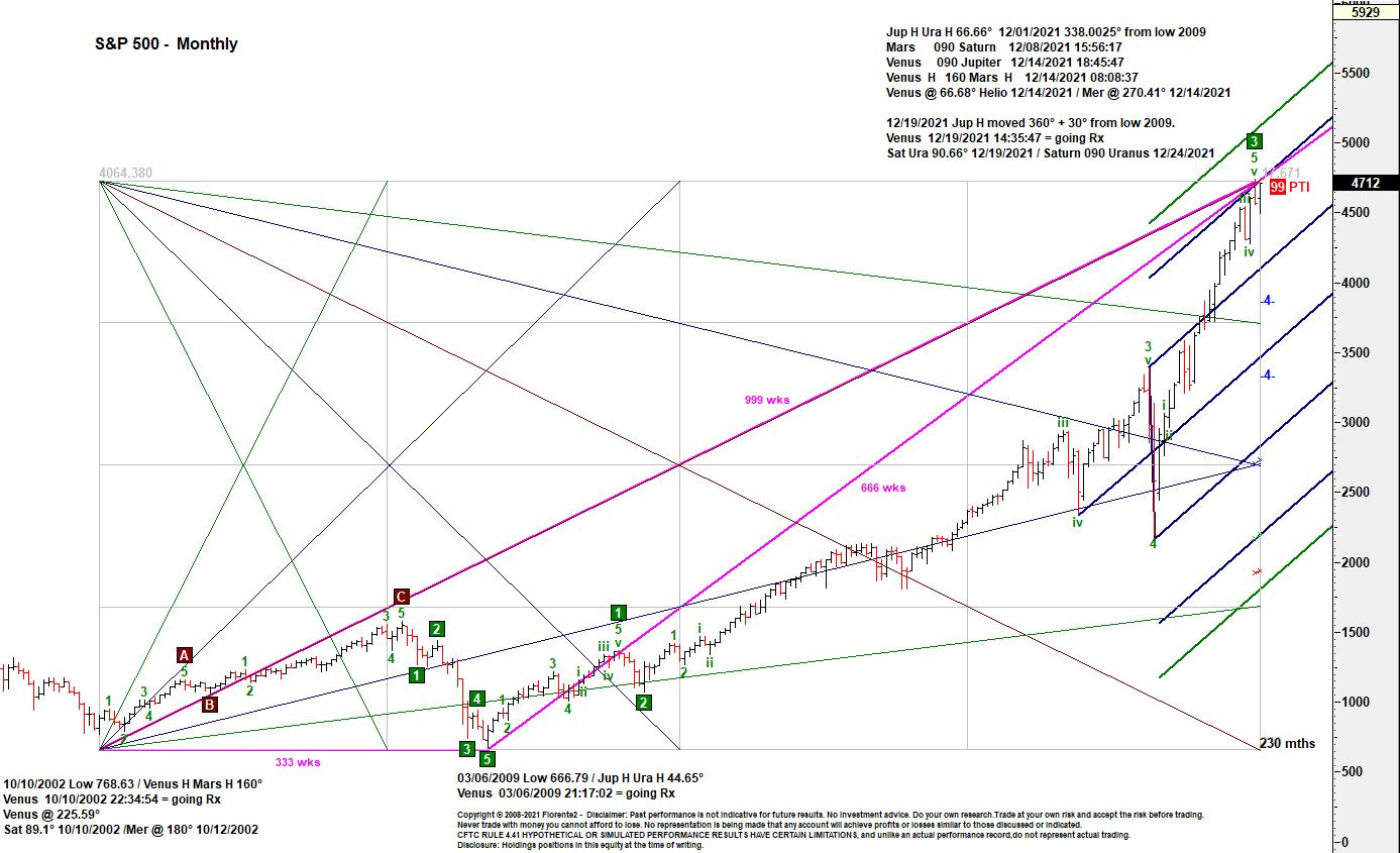 So, if history repeats I am expecting a high and a probable change in trend somewhere between December 13th and December 23rd 2021. This is approximately 666 weeks from low 2009 and 999 weeks from low 2002. The mid point is December 18/19th at Venus Rx. Note: The 666 weeks cycle is know as the Beast cycle, or as a reader @rotrot pointed out it is also know as The Feigenbaum Cycle.
